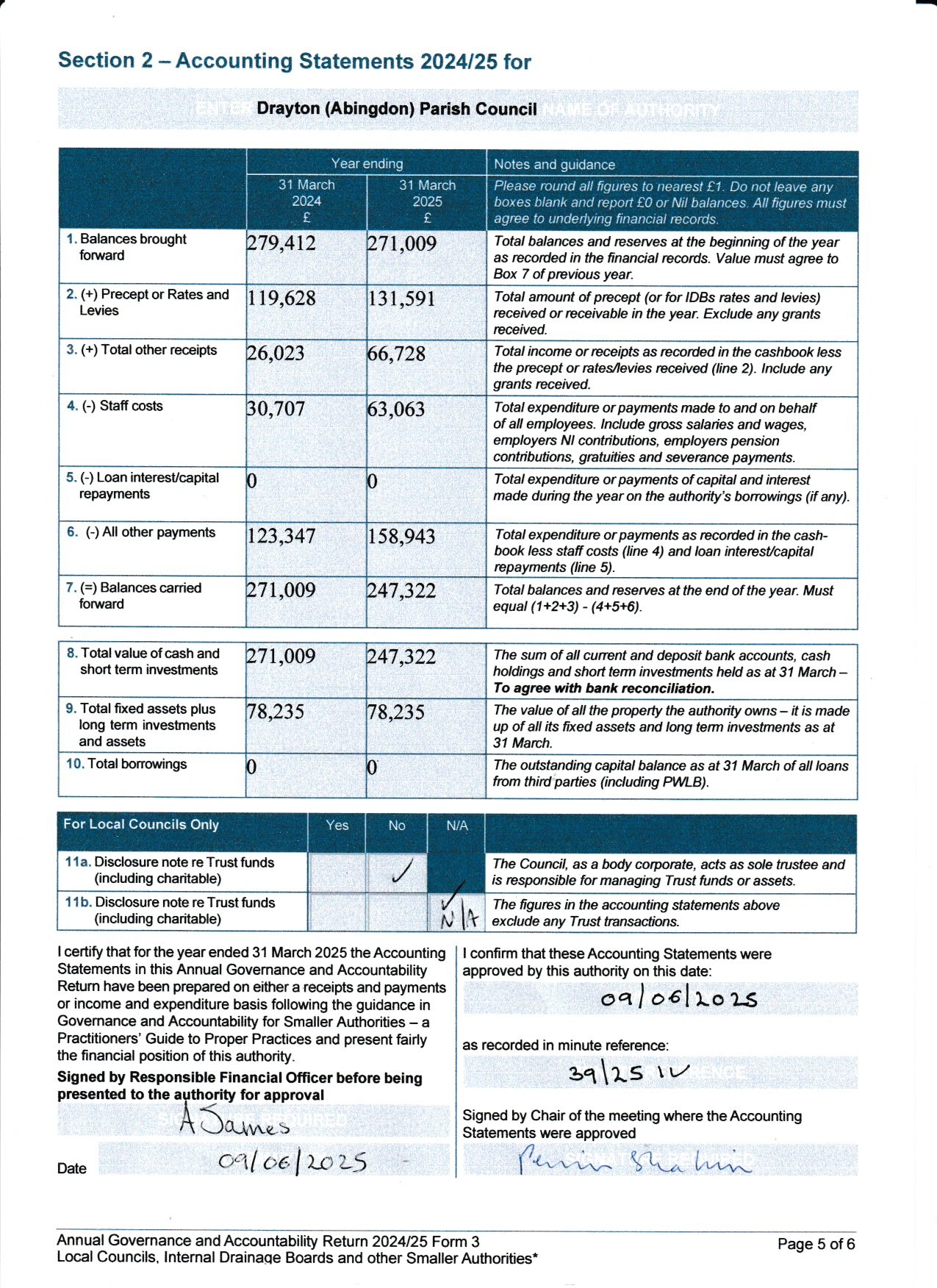 | Drayton Abingdon Parish Council Accounting Statements 2024-25 | 594.25 KB | JPEG |